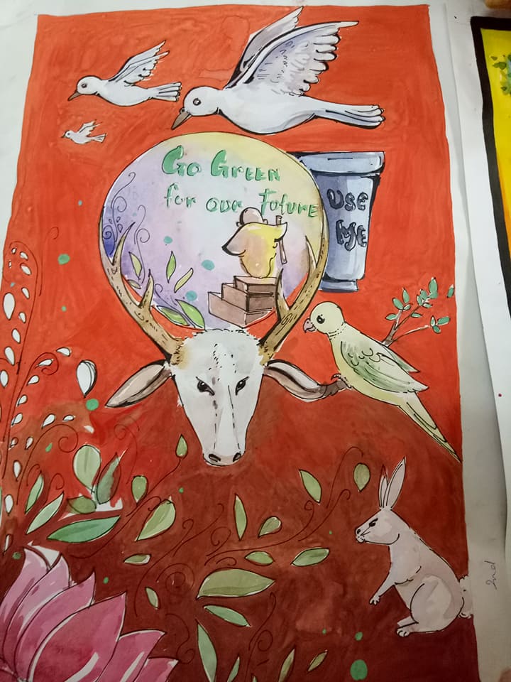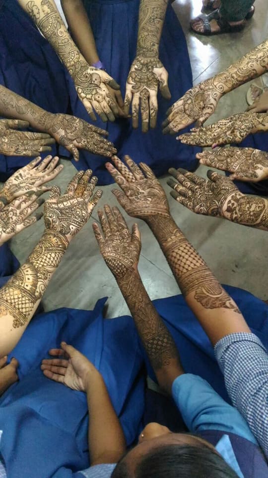 Competitions were held in Group song, Group Dance, Solo dance, Rangoli, Mehndi and Poster making. Childrens’ enthusiasm, interest and involvement was noteworthy. There was a lot of entertainment for the audience. Rangoli showcased the floral designs on bird and flowers. Poster making competition on the theme ‘Nature ‘ depicted the artistic skills. So did the intricate Mehndi designs.