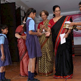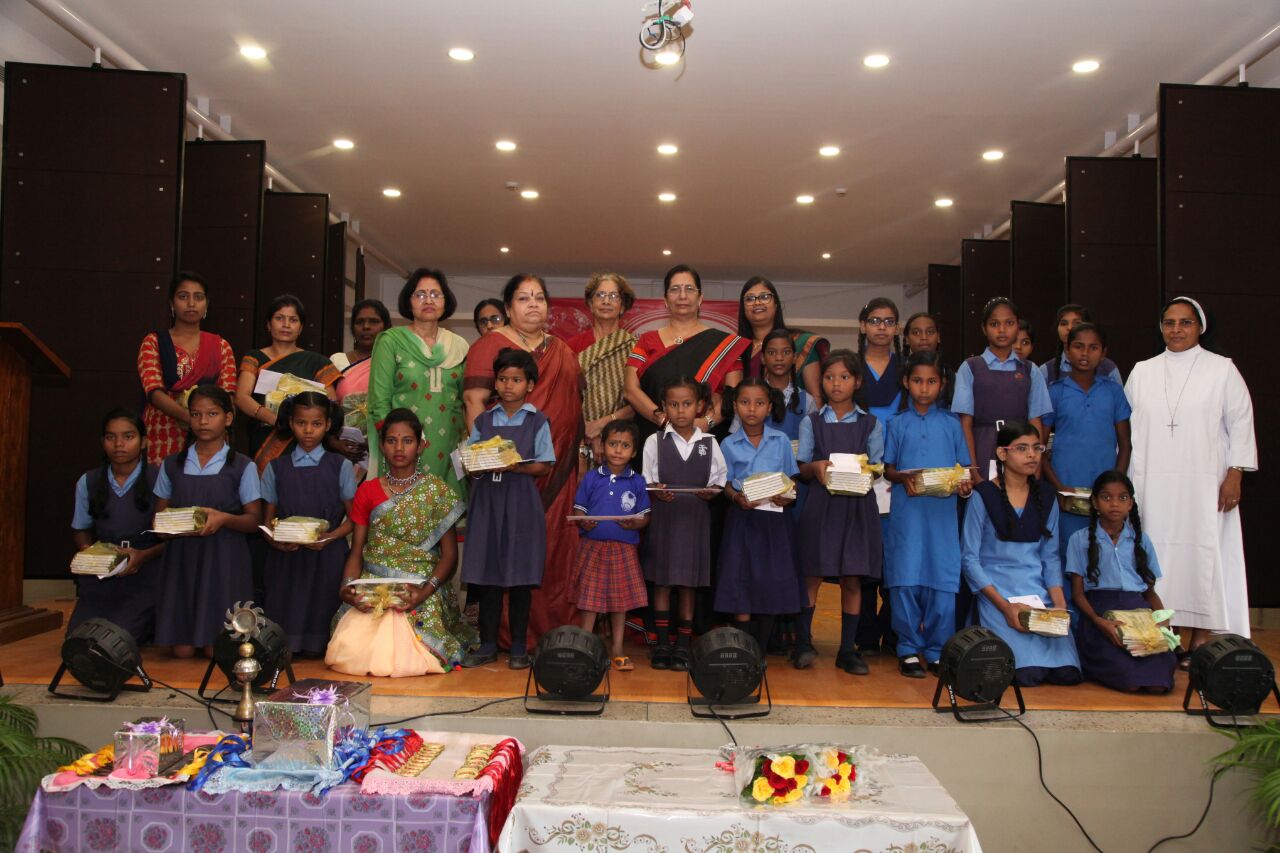 Chief Guest – Ms Ranjana Mishra lighting the Lamp. Sister Mridula and ASHA committee members present. Scholarship of Rs 1000 was given to two girls from each school. Total of 13 Project schools. ASHA donated Rs 26 thousand in all. Certificates and Medals given to the First, Second and Third Prize winners in the competitions held earlier.