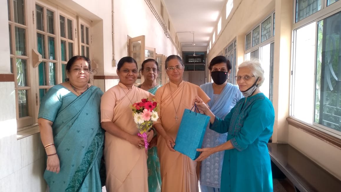 From left to right: Lalitha Seshadri, School Principal Sister Rashmita, Late Reena Hazra, Sister Superior Valsa, Neera Nandwani & Mahrookh Mehta.