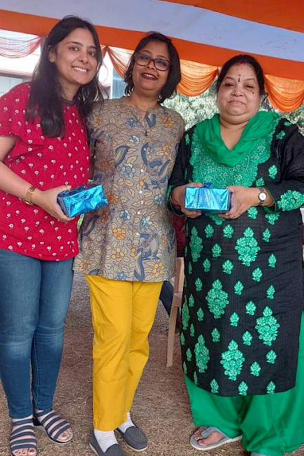At the picnic, receiving prizes from Sumita Singh ASHA President.